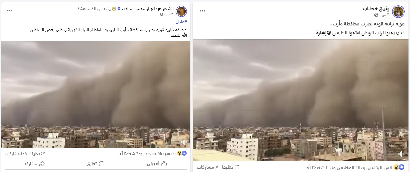 يأتي سياق النشر بعد تداول حسابات خبر عن وجود عاصفة رملية في محافظة مأرب منذ ساعات