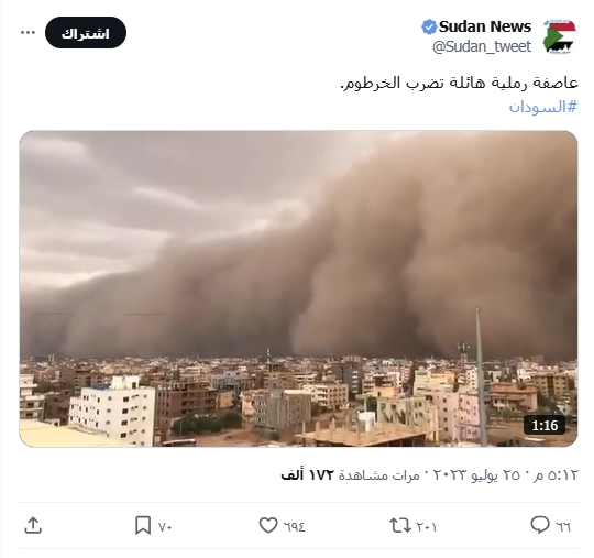 وتبين أن الفيديو قديم ويعود لعاصفة رملية اجتاحت الخرطوم - السودان بتاريخ 25