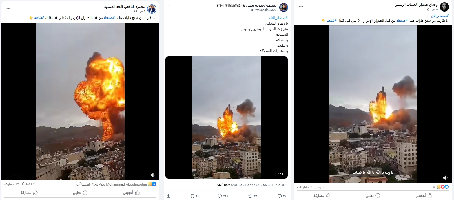 جاء تداول الفيديو بالتزامن مع القصف الذي تعرضت له صنعاء مساء اليوم 10 سبتمبر 2025.