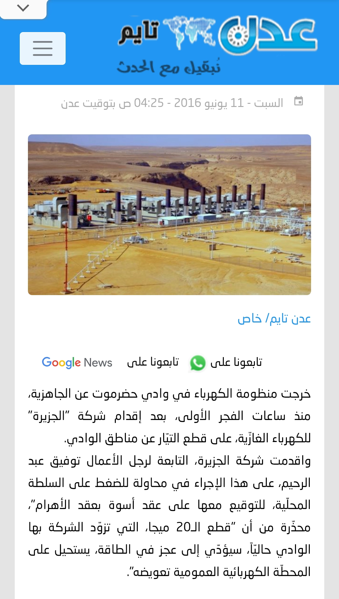 تحقّق فريق منصة مُسند من الصورة المتداولة باستخدام أدوات البحث العكسي، وتبيّن أن الصورة تعود في حقيقتها لشركة الجزيرة لتوليد الكهرباء في وادي حضرموت، وليست شركةً سعوديةً نفطيةً تنهب النفط الحضرمي. وكانت الصورة قد نُشرت سابقًا في سياقات متعددة تتعلّق بالكهرباء في وادي حضرموت، حيث وجدنا أن أقدم نشرٍ للصورة مُتوقَّع بتاريخ 11-يونيو-2016م.