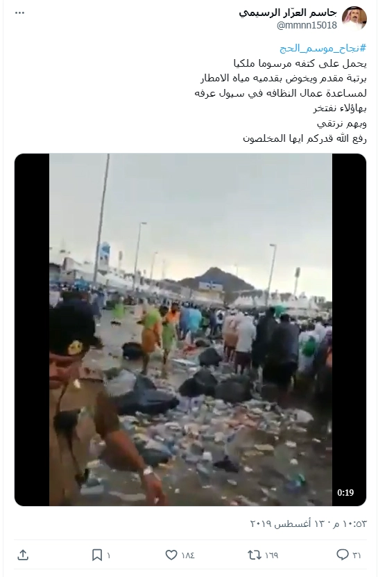 الفيديو المتداول لا يُظهر تدفق مياه صرف صحي على الحجاج بل أمطار في موسم الحج 2019
