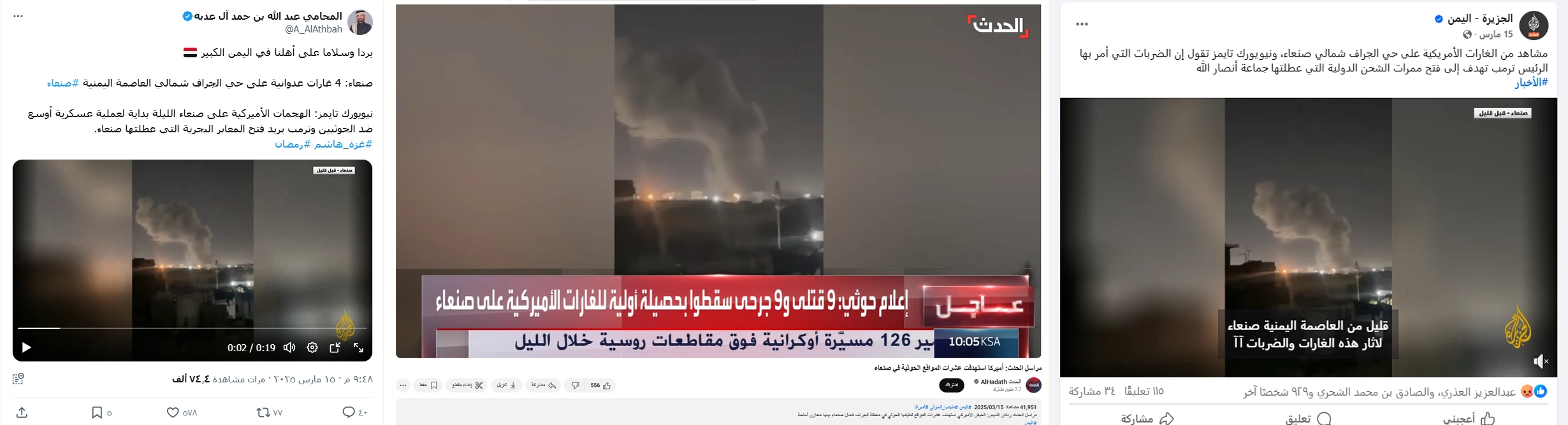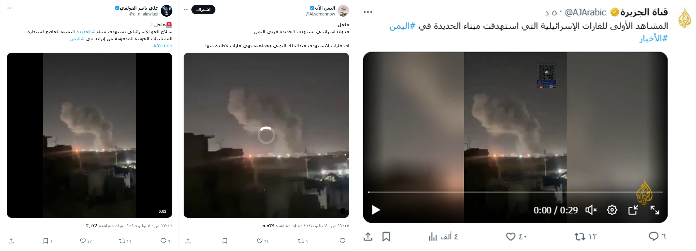 فيديو مضلل لا يُظهر قصفاً على ميناء الحديدة بل يعود لغارات على صنعاء في مارس 2025