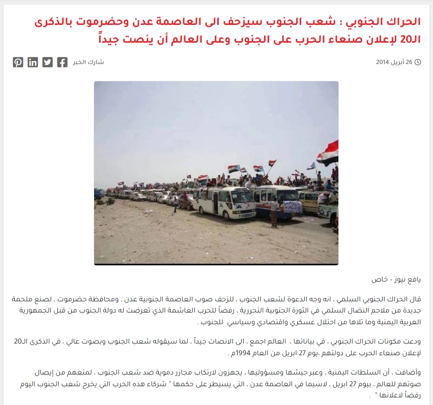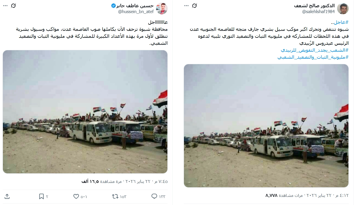 يأتي تداول الادعاء بالتزامن مع دعوة الانتقالي عبر مواقع وصفحات المجلس المنحل، حيث دعا مناصرو المجلس إلى تظاهرة جماهيرية غدًا الجمعة في عدن.