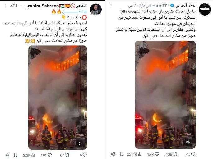 تداولت حسابات على مواقع التواصل الاجتماعي فيديو تدّعي أنه لحرائق في مقر عسكري إسرائيلي ناتجة عن قصف من قبل حزب الله... فما حقيقة الفيديو المتداول؟