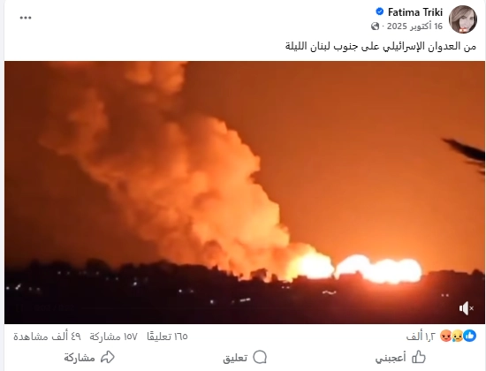 تحقّق فريق منصة مُسند من الفيديو المتداول باستخدام أدوات البحث العكسي، وتبيّن أن الفيديو قديم ويعود تاريخ نشره إلى 16 أكتوبر 2025، فيما تعود حقيقته إلى قصفٍ إسرائيلي استهدف جنوب لبنان، وليس له صلة بأحداث إيران السابقة أو الجارية.