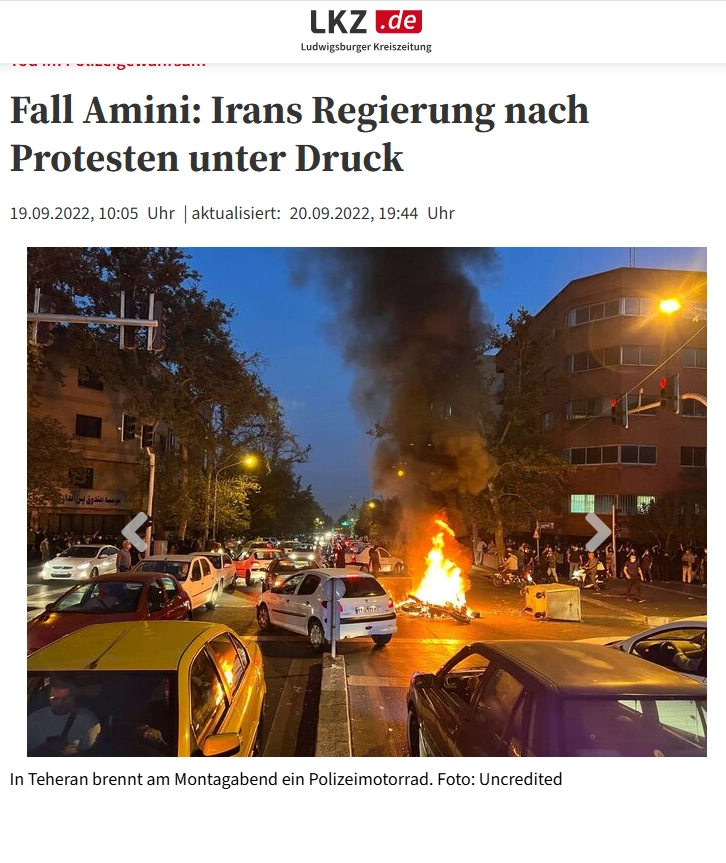 الصورة قديمة، تعود لاحتجاجات وأعمال شغب في هرمزكان وأصفهان في 19-9-2022م.