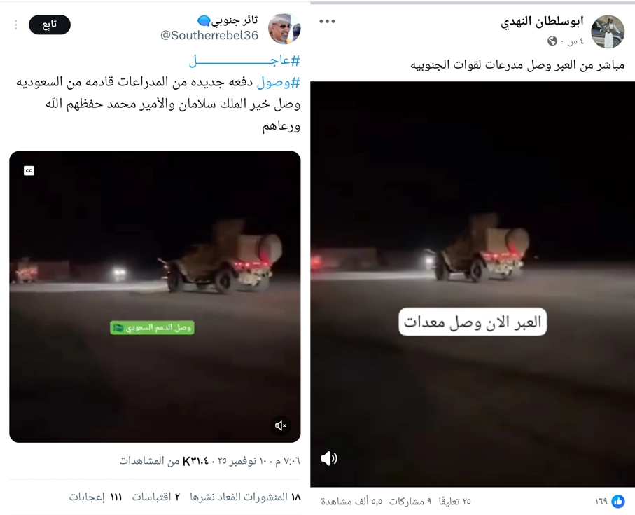 وقالت حسابات أخرى إنها وصلت العَبْر لدعم القوات الجنوبية. فما حقيقة هذا الفيديو