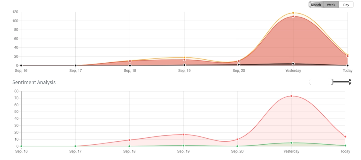 وقد بلغت الحملة ذروتها في 22 سبتمبر، عقب إعلان السلطات الأمنية القبض على أربعة مشتبهين، حين تجاوز عدد المنشورات ثلاثة آلاف وخمسمئة تغريدة في يوم واحد، بلغ متوسط وصولها إلى نحو 65 مليون مشاهدة، مع أكثر من 15 ألف إعجاب وألف وخمسمئة إعادة مشاركة في يوم الذروة وحده.
