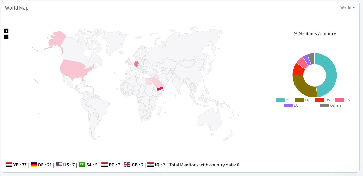 التوزيع الجغرافي أظهر أن تعز كانت مركز النشاط الرقمي المكثف، في حين لعب الخارج دورًا حاسمًا في تضخيم الاتهامات وربطها بالسياق السياسي الأوسع، ليغدو الوسم ساحة متشابكة بين المحلي والإقليمي والدولي.
