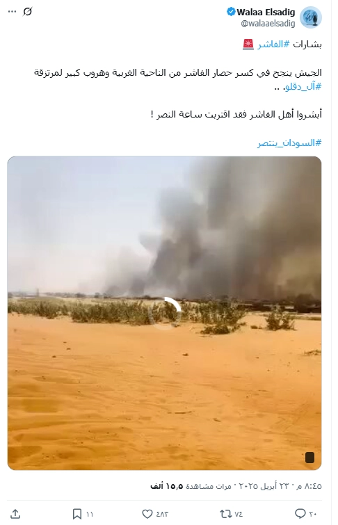 تحقّق فريق منصة مُسند من الفيديو المتداول باستخدام أدوات البحث العكسي، وتبيّن أنه قديم وليس من اليمن، ويعود تاريخه إلى 23 أبريل 2025، ويُظهر الجيش السوداني وهو يكسر حصار الفاشر من الناحية الغربية في مدينة الفاشر، ولا علاقة له بمعارك في محافظة الجوف.