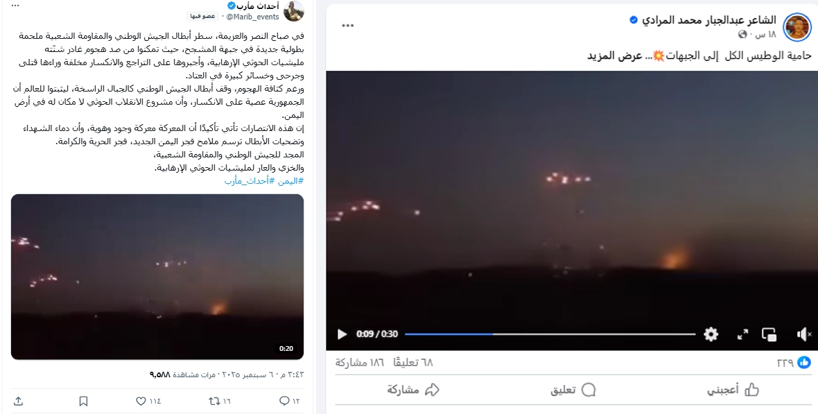 تداولت حسابات على مواقع التواصل الاجتماعي مقطع فيديو زُعم أنه يوثق اشتباكات بين قوات الجيش الوطني وجماعة الحوثي في مأرب ما حقيقة هذا الفيديو؟