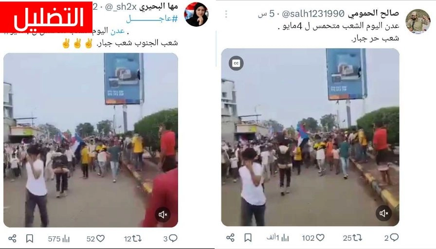 تداولت حسابات على مواقع التواصل الاجتماعي مقطع فيديو يُزعم أنه يوثق خروج مظاهرات في مدينة عدن اليوم، وأنها تمهّد لتحركات دعا إليها المجلس الانتقالي الجنوبي المنحل أنصاره للمطالبة بعودة عيدروس الزبيدي ما حقيقة الفيديو المتداول؟