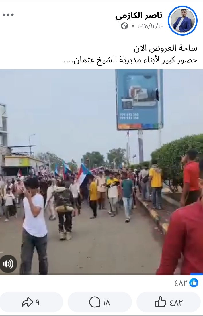 تحقق فريق منصة مُسند من الفيديو المتداول عبر أدوات البحث العكسي، وتبين أن المقطع يوثق مظاهرة قديمة تعود إلى 20 ديسمبر 2025 في ساحة العروض بمديرية الشيخ عثمان في مدينة عدن ولا علاقة له بالأحداث الجارية حاليا