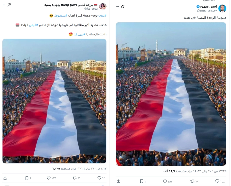 تداولت حسابات على مواقع التواصل الاجتماعي صورة لمظاهرة ترفع العلم اليمني في عدن، تدّعي أنها حديثة وخرجت في محافظات جنوب اليمن تأييدًا لقرارات رئيس مجلس القيادة الرئاسي، وتأييدًا للوحدة اليمنية. فما حقيقة الصورة المتداولة؟