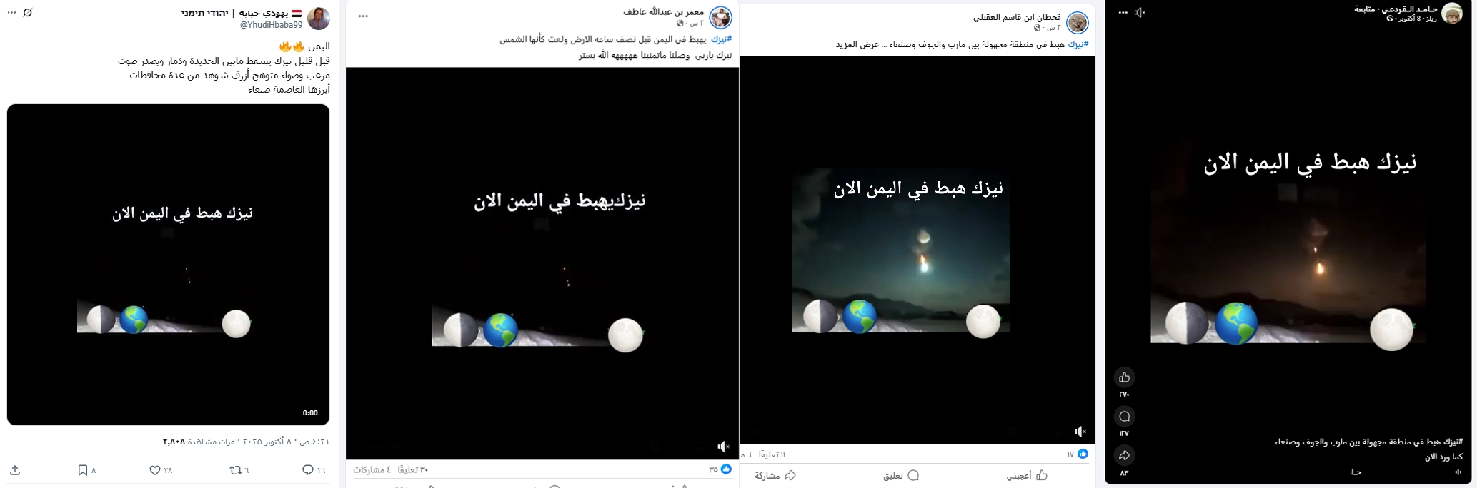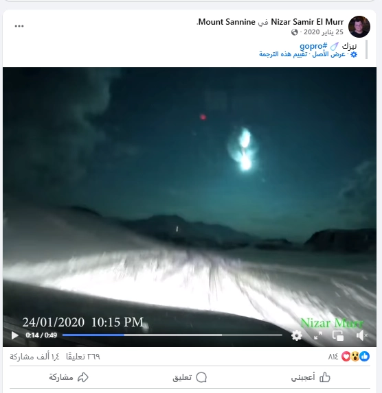 تحقّق فريق منصة مُسند من صحة الفيديو المتداول باستخدام أدوات البحث العكسي، وتبيّن أن المقطع ليس في اليمن، بل يعود إلى سقوط نيزك في منطقة Mount Sannine بلبنان، حيث التقطه شخص يُدعى Nizar Samir El Murr أثناء مروره بالقرب من المنتزه بتاريخ 24 يناير 2020، وتم نشره في اليوم التالي 25 يناير 2020. وبذلك يتضح أن الفيديو قديم، ولا علاقة له بأي أحداث أو ظواهر حديثة في اليمن.