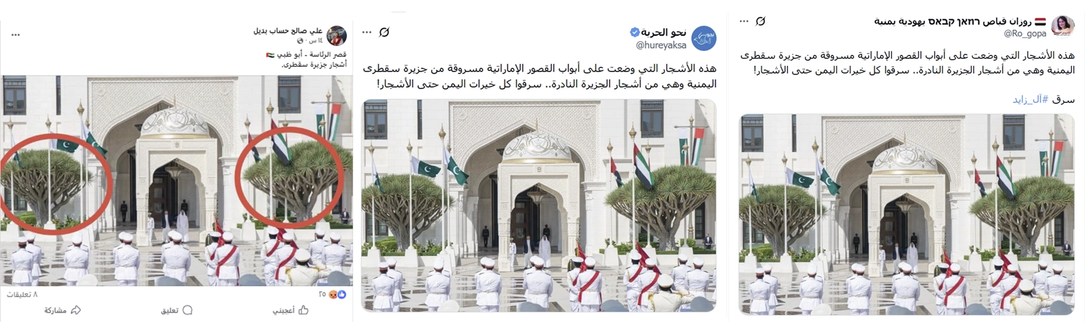 تداولت حسابات على مواقع التواصل الاجتماعي صورة تظهر أشجار دمّ الأخوين في الإمارات، تدّعي أن الأشجار سرقتها الإمارات من جزيرة سقطرى اليمنية إبان سيطرتها العسكرية على الجزيرة... ما حقيقة الصورة المتداولة؟