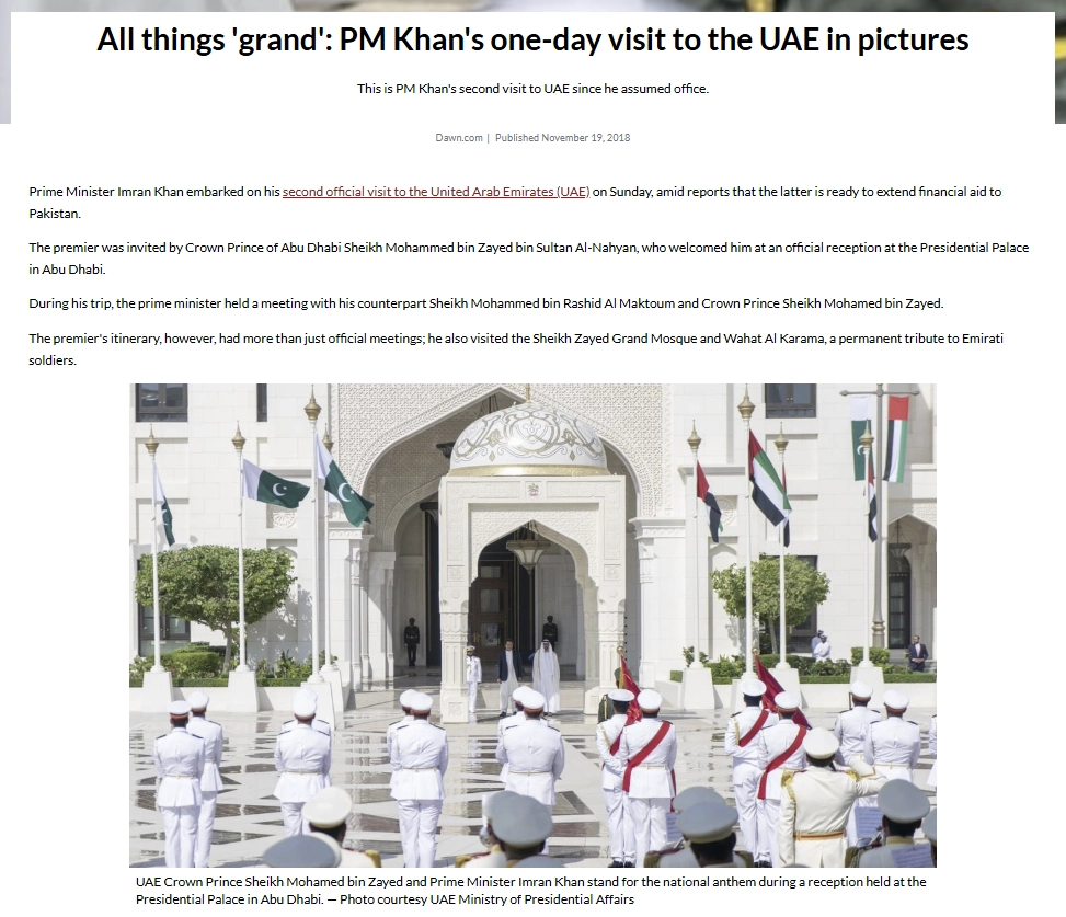 تحقق فريق منصة مُسند من الصورة المتداولة باستخدام أدوات البحث العكسي، وتبيّن أن الصورة مضللة، حيث تعرّضت لتركيب أشجار دمّ الأخوين على الصورة الحقيقية الخالية من الأشجار، وتعود الصورة إلى زيارة رئيس الوزراء الأسبق خان إلى دولة الإمارات العربية المتحدة، ونُشرت بتاريخ 19 نوفمبر 2018.