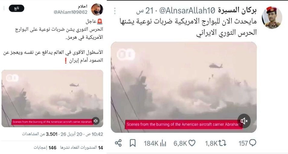 تداولت حسابات على مواقع التواصل الاجتماعي فيديو لسفينة تحترق تدّعي أن الحرس الثوري استهدف البارجة الأمريكية في مضيق هرمز... فما حقيقة الفيديو المتداول؟