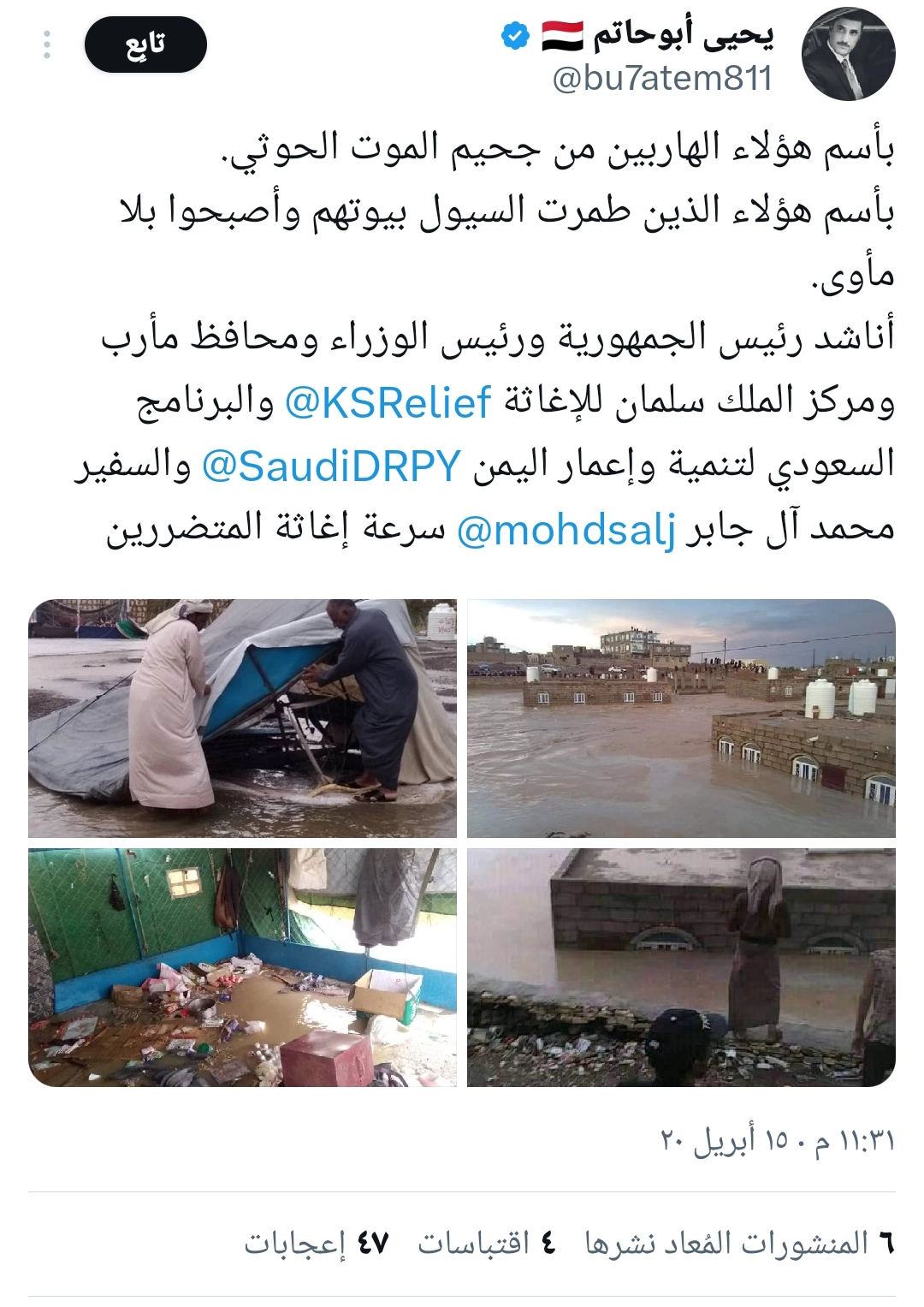 يأتي انتشار الصور في ظل تدفّق السيول التي