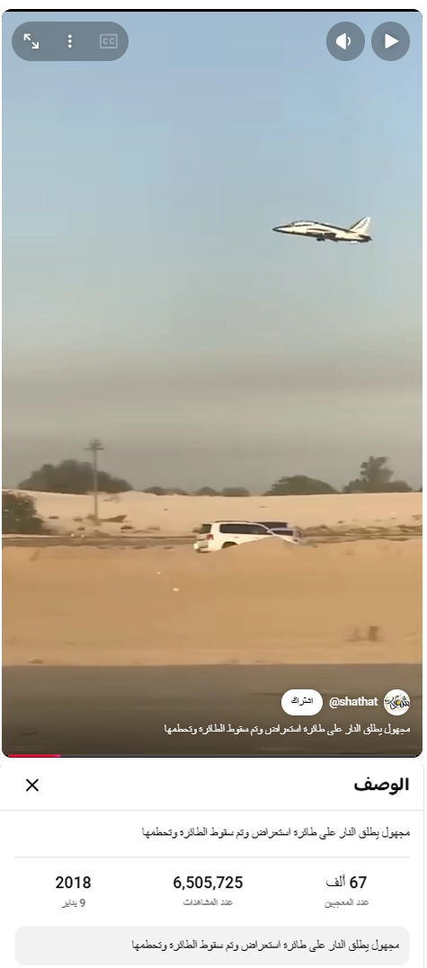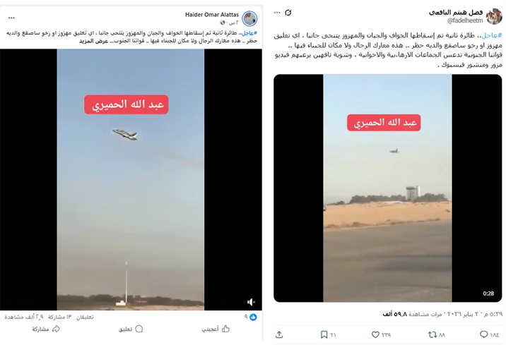 تداولت حسابات على مواقع التواصل الاجتماعي فيديو لسقوط طائرة حربية، تدعي أنه حديث وأنه لطائرة حربية أسقطتها قوات الانتقالي في حضرموت اليوم... فما حقيقة الفيديو المتداول؟