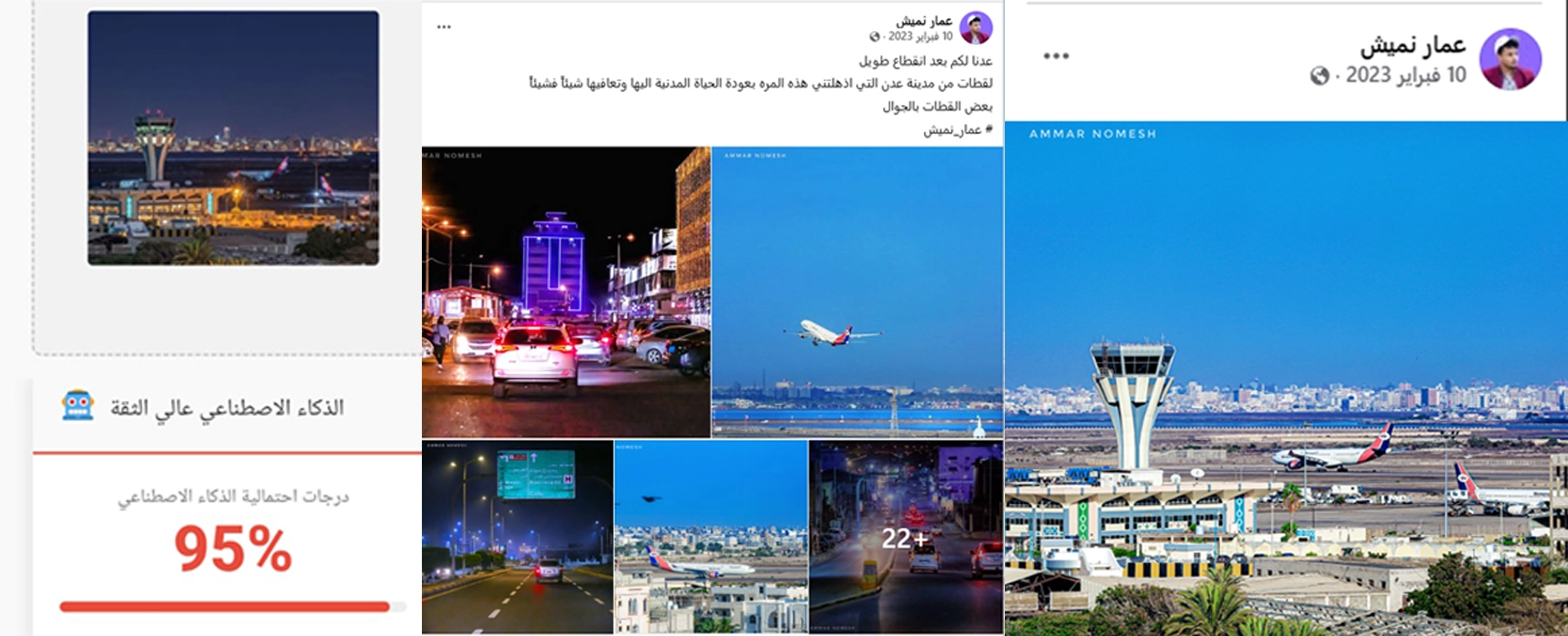 تحقق فريق منصة مُسند من الصورة المتداولة بأدوات البحث العكسي وأدوات فحص الصور المعدلة بتقنية الذكاء الاصطناعي، وتبيّن أن الصورة في حقيقتها نهارية وليست ليلية، وهي صورة قديمة وتعود حقوقها الفكرية للمصور عمار نميش، وكان قد نشرها بتاريخ 10 فبراير 2023 أثناء رحلته إلى عدن بينما تم التلاعب بالصورة عبر استخدام تقنية الذكاء الاصطناعي وتحويل المنظر من نهاري إلى ليلي.