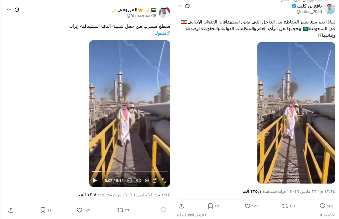 فيديو مُولَّد بالذكاء الاصطناعي وليس لقصف إيراني على منشآت نفط سعودية