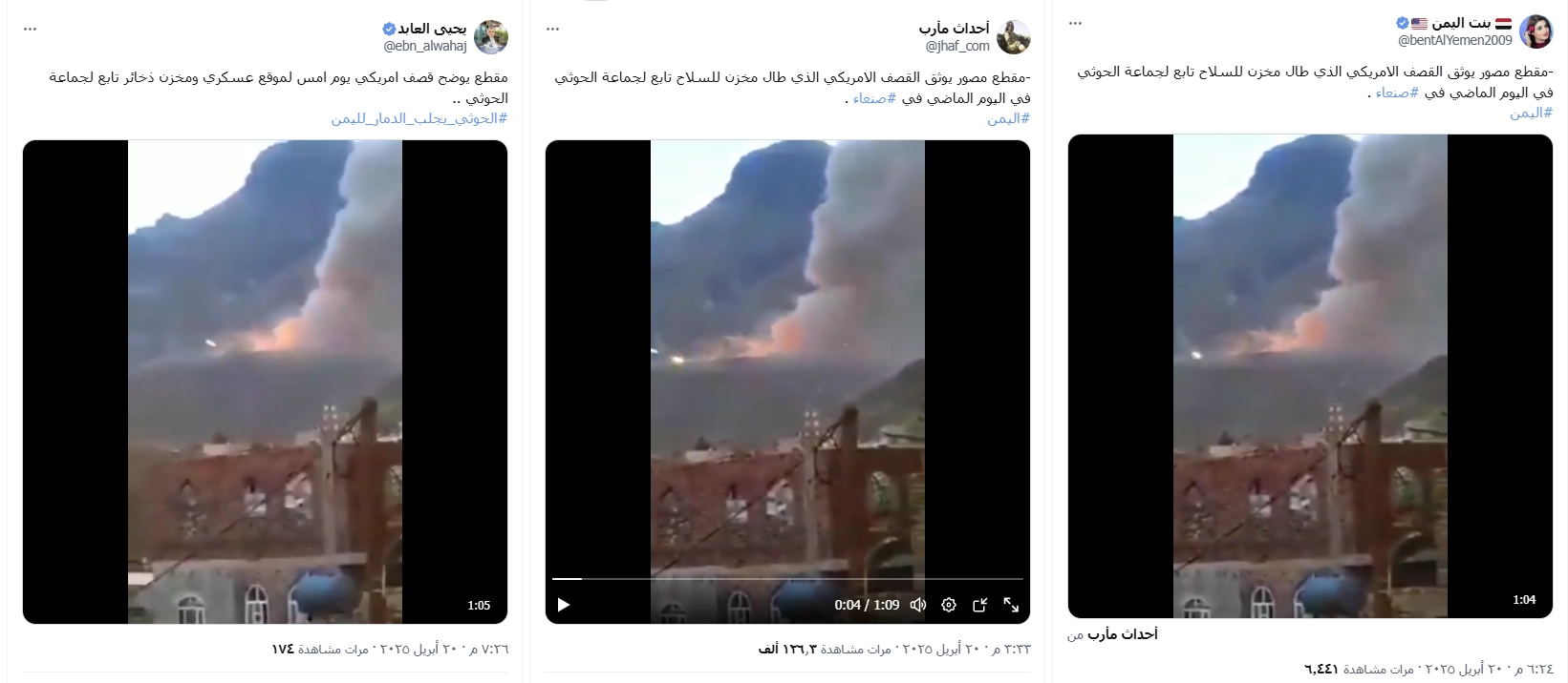 يأتي تداول هذا الفيديو في ظل استمرار القصف الامريكي على مواقع ومناطق متفرقة خاضعة لسيطرة جماعة الحوثي في شمال وغرب اليمن.