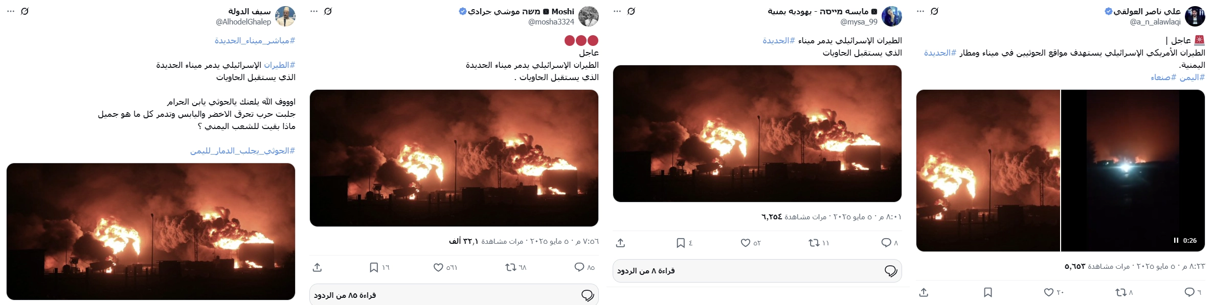الصورة المتداولة تعود لقصف سابق في الحديدة وليست مرتبطة بأحداث اليوم