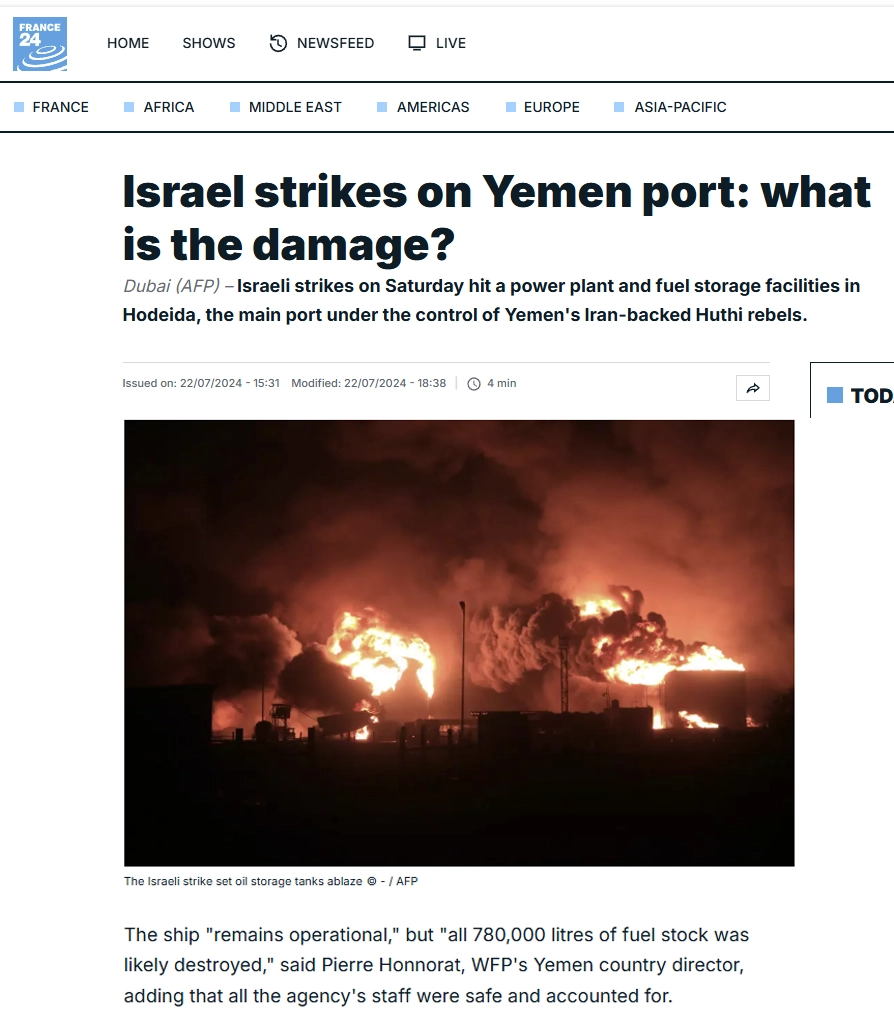 الصورة تعود لقصف قديم استهدف خزانات الوقود في ميناء الحديدة عام 2024، وليست مرتبطة بأحداث حديثة.
