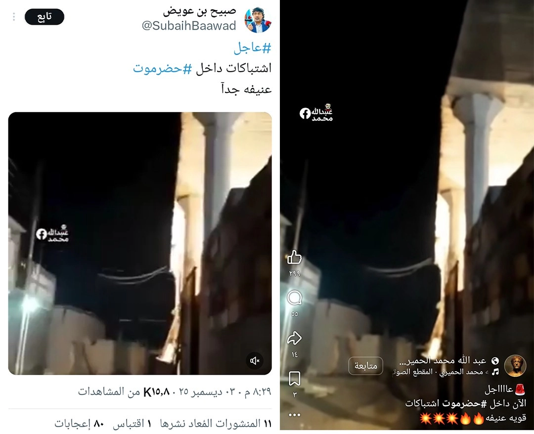 تداولت حسابات على مواقع التواصل الاجتماعي فيديو تدعي أنه يوثق إشتباكات ليلية مسلحة في وادي حضرموت بين قوات الانتقالي والجيش الوطني في المنطقة الاولى... فما حقيقة الفيديو ؟