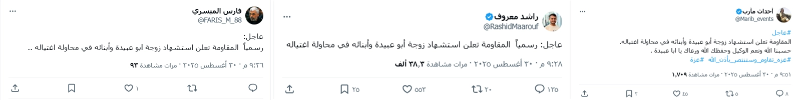 لا صحة لوجود إعلان رسمي عن اسـتشهاد عائلة أبو عبيدة