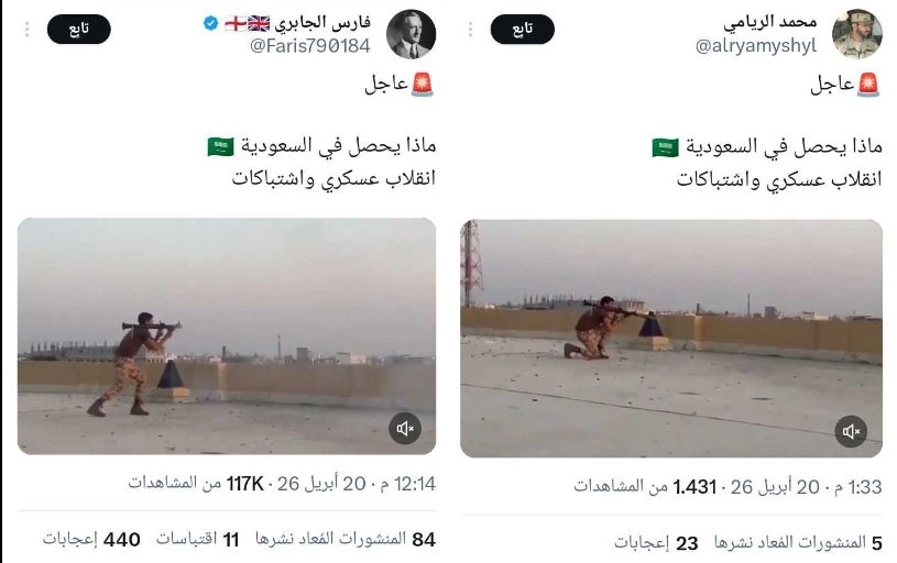 تداولت حسابات موالية للمجلس الانتقالي الجنوبي على مواقع التواصل الاجتماعي مقطع فيديو زعمت أنه يوثق وقوع انقلاب عسكري واشتباكات داخل المملكة العربية السعودية فما حقيقة الفيديو ؟