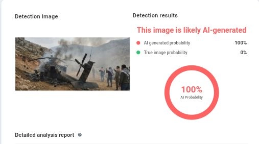 تحقق فريق منصة مُسند من الصور المتداولة باستخدام أدوات كشف التزييف العميق وتبين أن الصور مولدة بالذكاء الاصطناعي بنسبة 100% كما أن الصورة لا توجد في أي من المواقع الإخبارية الخاصة بحزب الله أو وسائل إعلام إيرانية كما أن الخبر أيضا مزيف ولا حقيقة له