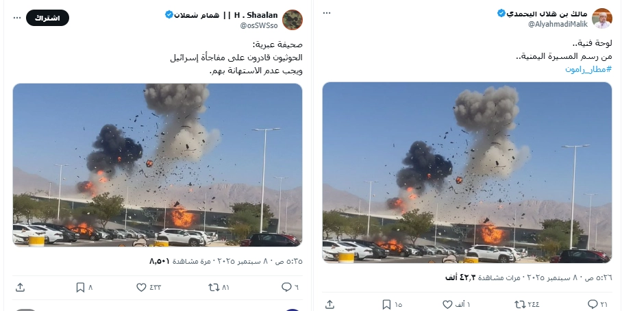 يأتي سياق نشر الصورة بعد أن نفّذت جماعة الحوثي هجومًا بمسيّرات استهدف مطار رامون في فلسطين المحتلة يوم أمس.
