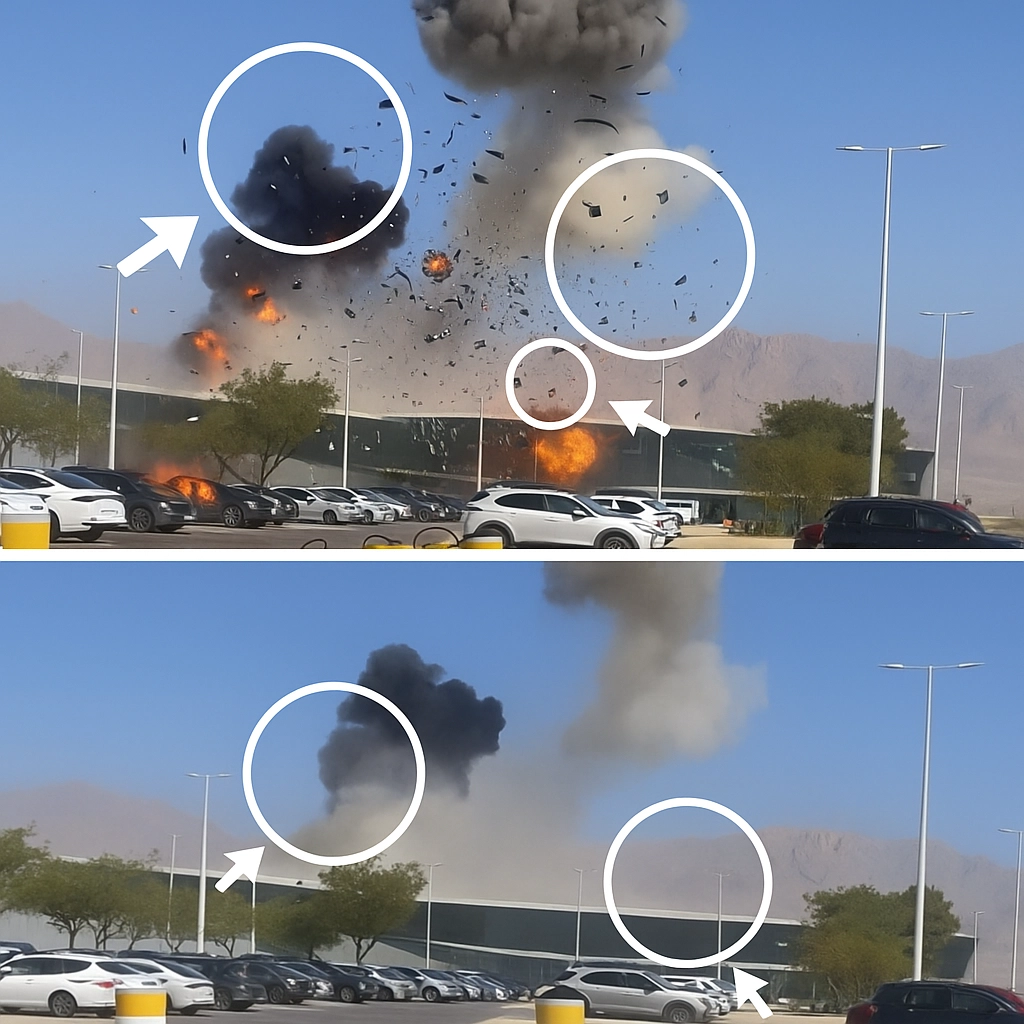 الاصطناعي، وتبيّن أن الانفجار معدل بهذه التقنية وليس حقيقيًا أثناء القصف.