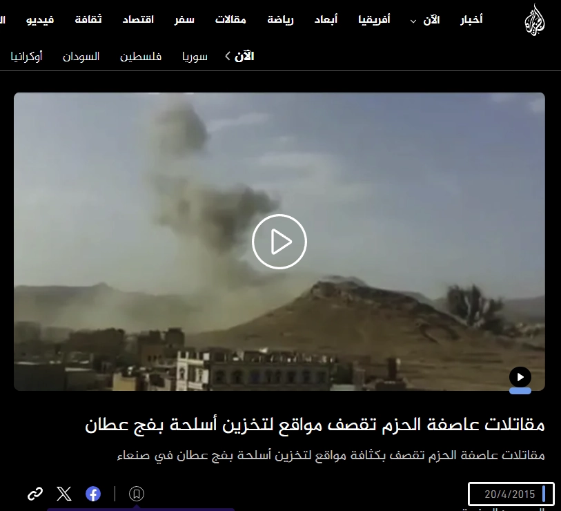 المقطع المتداول قديم ويعود أصله إلى قصف نفذته قوات التحالف العربي بقيادة المملكة العربية السعودية على مواقع جماعة الحوثي بصنعاء بتاريخ 20/ 4/ 2015