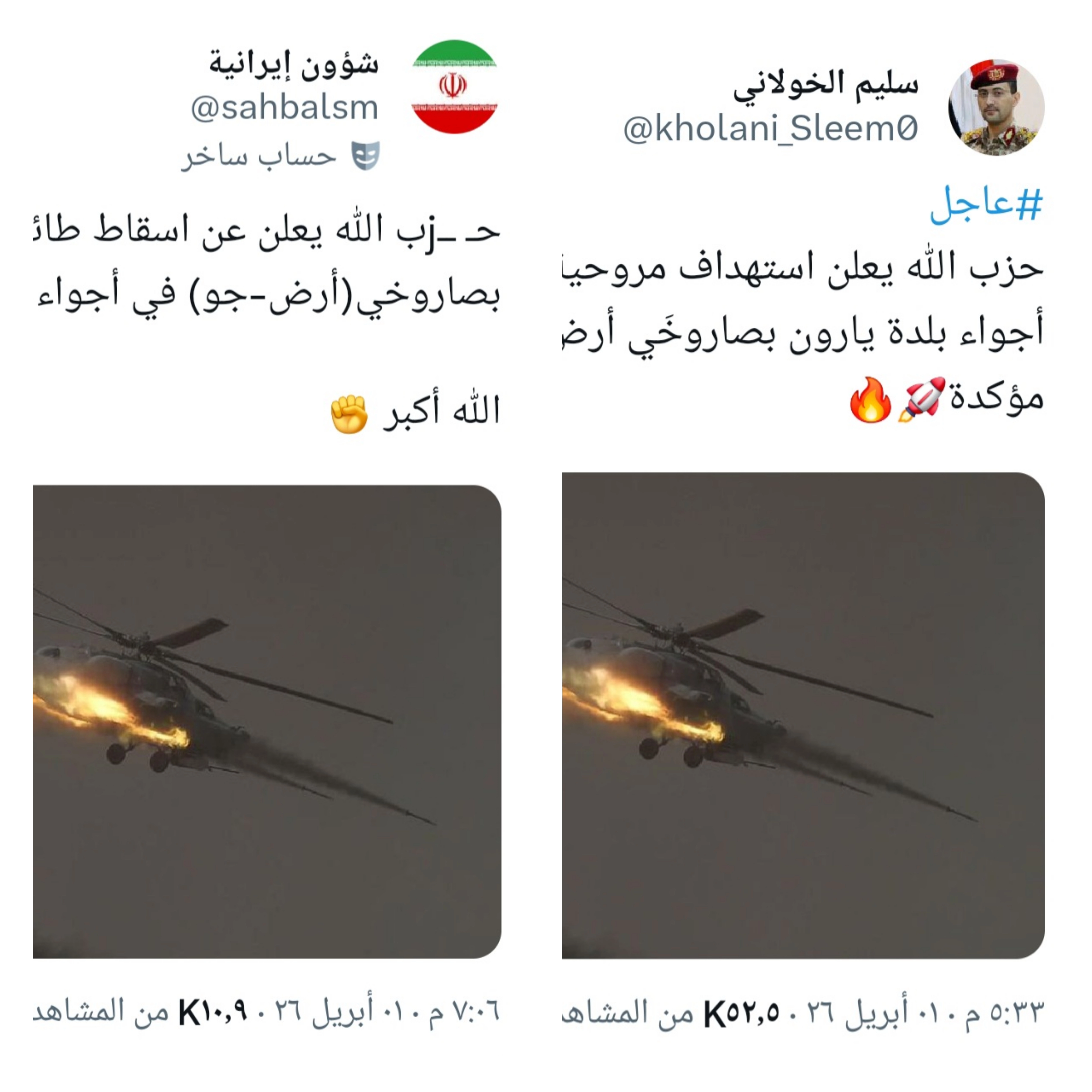 تداولت حسابات على مواقع التواصل الاجتماعي صورة لطائرة مروحية مشتعلة بالنيران، تدّعي أنها تابعة لإسرائيل وأنها استُهدفت من قبل حزب الله في لبنان... ما حقيقة الصورة المتداولة؟