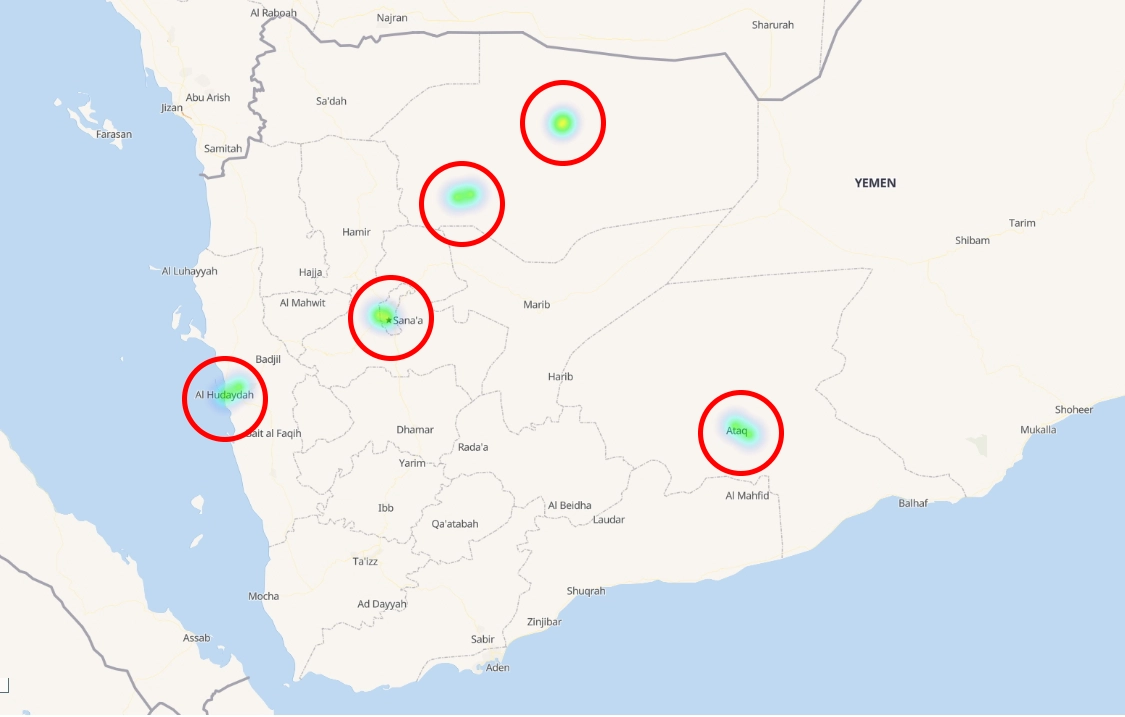 أظهر تحليل البصمة الجغرافية لنشاط وسم مطار_عدن_غير_آمن أن مركز الثقل في الحملة كان داخل اليمن ولا سيما في المناطق الخاضعة لسيطرة جماعة الحوثي فيما برزت طبقة تمويه جغرافي تهدف لإظهار امتداد خليجي واسع للحملة على نحو لا يعكس الحجم الحقيقي للمشاركة.