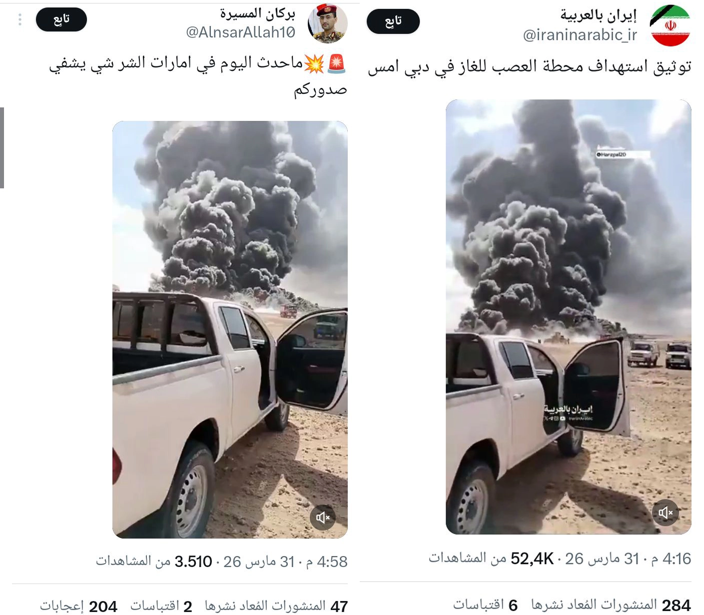 تداولت حسابات على مواقع التواصل الاجتماعي مقطع فيديو، زعمت أنه يوثّق استهداف محطة العصب للغاز في الإمارات. فما حقيقة الفيديو المتداول؟