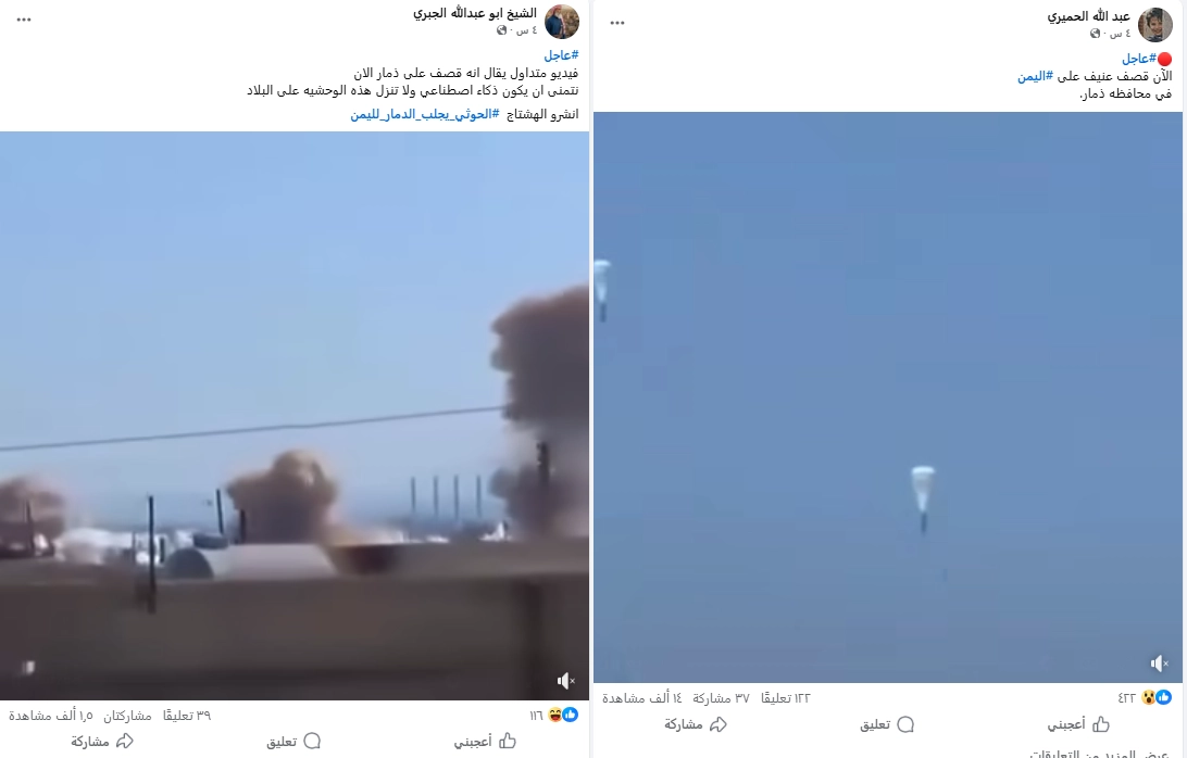 تداولت حسابات على مواقع التواصل الاجتماعي مقطع فيديو، زُعم أنه يوثق قصفًا نفذته إسرائيل على محافظة ذمار. فما حقيقة الفيديو المتداول؟