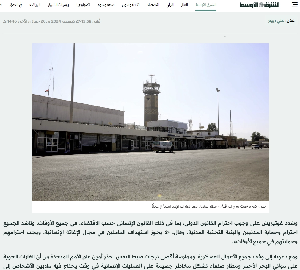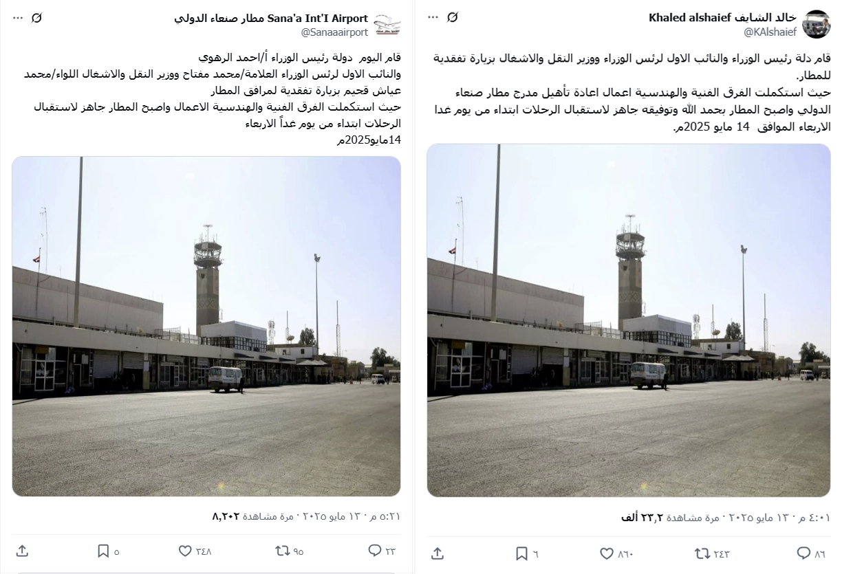 الصورة المتداولة لمطار صنعاء قديمة وتعود إلى عام 2024 وليست حديثة.