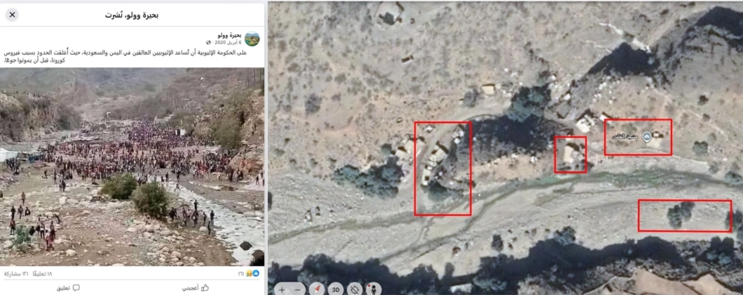 تداولت حسابات على منصّات التواصل الاجتماعي صورة تُظهر حشودًا كبيرة من الأشخاص في وادٍ محاطٍ بالجبال، وادّعت أن الصورة لمهاجرين أفارقة يشكّلون خطرًا على اليمن والسعودية على الحدود اليمنية السعودية فما حقيقة الصورة؟